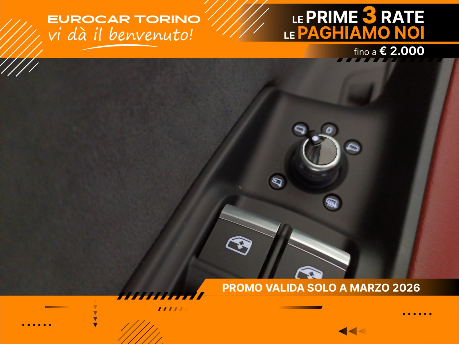 Il prezzo barrato è riferito al prezzo di listino della vettura; il vantaggio economico è determinato dalla differenza tra il suddetto importo e il prezzo promozionale della campagna. Le informazioni sui veicoli contenute nel presente Sito devono ritenersi di natura meramente indicativa e non costituiscono né proposta contrattuale né offerta al pubblico. Invitiamo gli Utenti interessati a rivolgersi sempre alla Concessionaria di riferimento del Gruppo Eurocar Italia per essere informati sulle caratteristiche e sul prezzo di ogni specifico veicolo validi al momento dell’acquisto - che sarà oggetto di singola trattativa - ed in particolare in relazione alla disponibilità del singolo veicolo o equipaggiamento al momento dell’ordine. Le caratteristiche tecniche, gli equipaggiamenti di base, gli optional, i tessuti, i colori, le immagini e le configurazioni sono soggetti a continue variazioni e pertanto potrebbero non essere disponibili al momento dell’acquisto del veicolo. Eurocar Italia e le concessionarie del Gruppo possono modificare in qualsiasi momento le specifiche dei prodotti pubblicate sul presente sito web, senza preavviso alcuno.